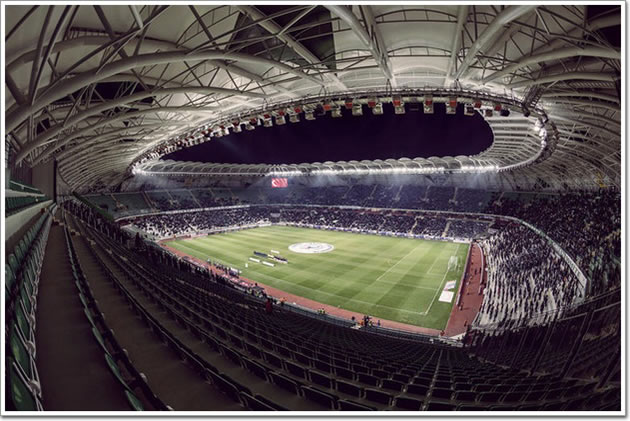 科尼亞城市體育館實景圖 科尼亞城市體育館坐落在科尼亞城市北部,距離市中心9公里,占地面積約450000平米,包含一個足球運動場、一個游泳館、一個自行車賽車場和一個廣場。該體育館是科尼亞城市文化符號與現(xiàn)代建筑相互碰撞的產(chǎn)物,建筑的外立面白綠相間的顏色正是代表了這個城市的足球隊。 建筑的平面布置是根據(jù)歐足聯(lián)的標(biāo)準(zhǔn)設(shè)計的。場館分上下兩層看臺,總共可容納4.2萬人。看臺是環(huán)形的,在東南西北四個方向均設(shè)有座位區(qū)。在觀眾就坐的看臺下面有設(shè)置多個廁所和零售區(qū),足夠為場館內(nèi)的所有人提供服務(wù)。
